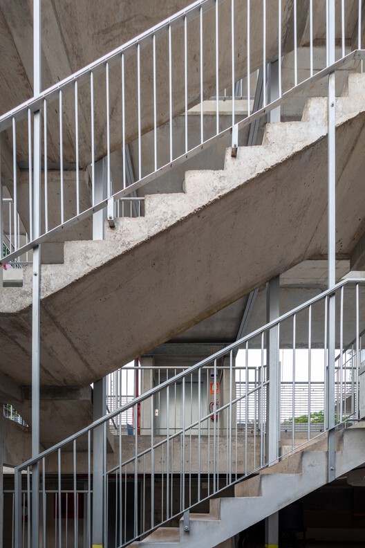该项目寻求简洁线条和简单体积的当代美学。施工是用预制混凝土件进行的,并在起重机的帮助下在现场组装,这种解决方案在执行中速度更快且简单。