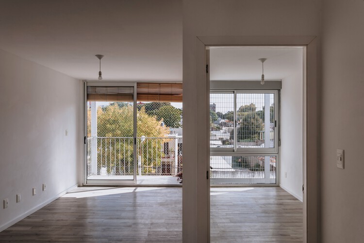 莫雷利住宅楼位于蒙得维的亚的中心区域,位于界墙之间,宽 10 米,深 46 米。以我们的邻近城市布宜诺斯艾利斯的 R2B1 分区为参考,以充分利用土地的特征,该项目围绕一个 4 米长的大型中央露台分为两个 11 层的街区。