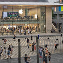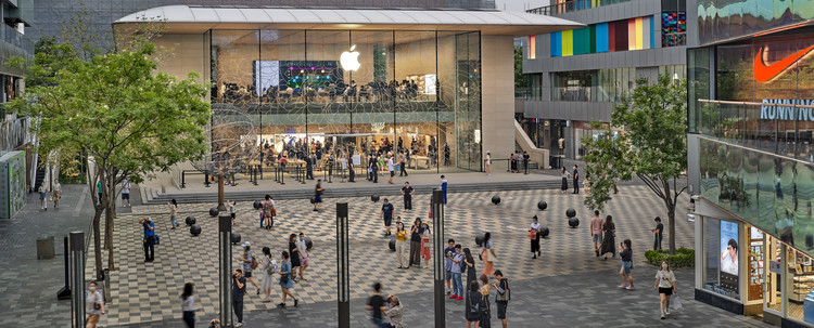福斯特事务所设计的苹果三里屯旗舰店近日在北京三里屯落成,并投入正式的零售和体验业务。原店建于2008年,位于新址的附近,是苹果在中国开设的第一家分店。新店的建成旨在与周围的步行街建立新的对话,并让店面正前方的广场能成为社交的中心。