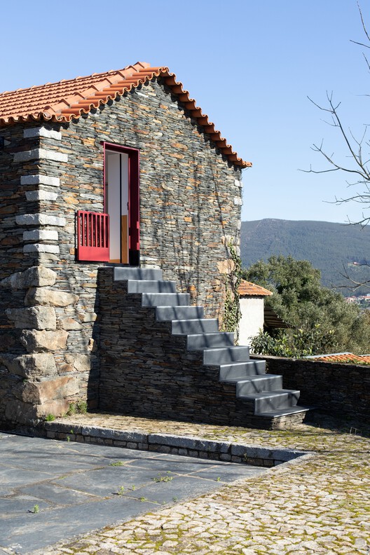 在我们介入之前,这所房子原本是一座用于处理蔬菜和谷物的建筑,由片岩和花岗岩石料制成。在房子周围,还有一个木制 raccard——葡萄牙北部常见的传统粮仓,以及其由板岩建成的打谷场。