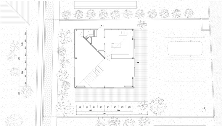 建筑设有一个正方的平面布局,上层被对角分割。通过打造跃层来增加与底层的互动并将其与螺旋的移动路线连接起来,构成三层结构,为每个地方提供不同的视野。每一层都配备必要了的功能、家具与植物,使其成为一个可以自由创造的“自由空间”。