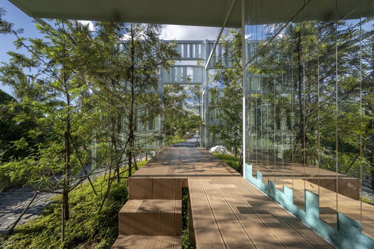 在这个项目中,设计团队坚持了一种尊重人与自然平衡的设计理念。在进入建筑之前,他们为用户创造了不同的导向空间,利用不同层级的大屋檐和露台来连接情感,并在建筑外部创造多样化的活动。设计团队希望看到建筑与周围自然的边界变得模糊,创造出一种“内外交融”的体验。