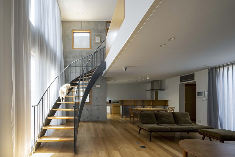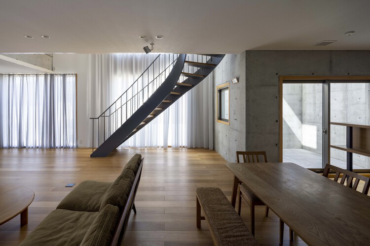 房屋选址位于兵库县西宫市一个安静的住宅区。客户希望我们能做一个坚固的混凝土框架,既能显示出房子的空间之大,又能够适应孩子的成长及其生活方式的变化。因此,我们将钢筋混凝土墙体结构用作围墙的主体结构,而一室一厅的室内空间则用中庭进行连接。我们尽可能不用承重墙结构,而是使用室内装修配件隔出各个房间。这栋房子的设想主题是结构恒久、功能可变,让客户及其家人可以自由自在,生活方便。