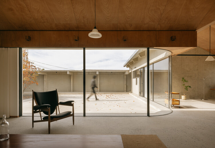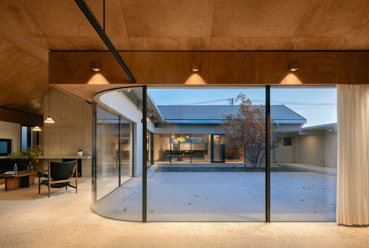 玻璃幕墙上口框材如果直接做在檐梁的底部,室内就获得了两侧3米多高的通透开口。这一方面让家人缺乏庇护感,另一方面也要付出能耗上的代价。我们把檐梁下吊到2.4米的高度,檐口就像蘑菇伞边卷下来。这让室内既维持了一个舒适的高度,又让人们不至于被袒露在天地之间。艳阳高照或是大雨倾盆,坐在窗前的人们,就像躲在蘑菇下面的小虫,得以安顿。