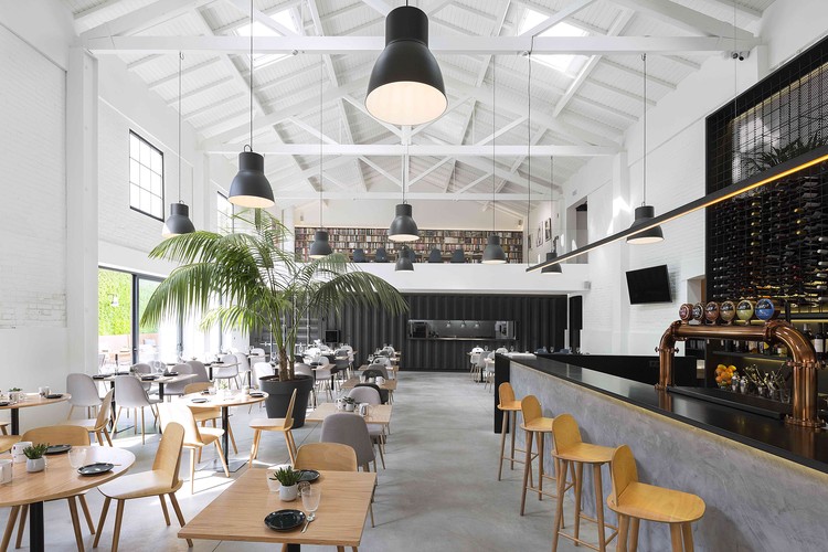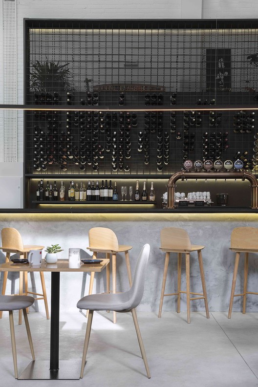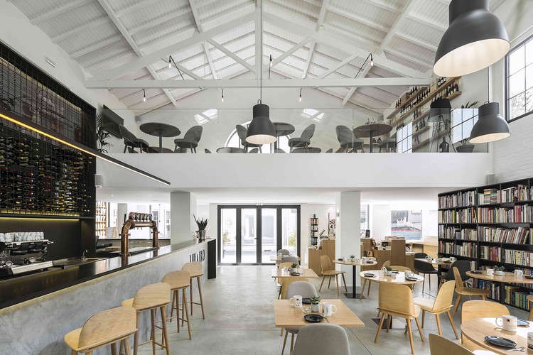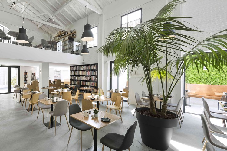 一楼入口处混合了咖啡厅和书店。用餐区的主区域以吧台和酒柜为特征,带着“工业风”特点的新结构,结合了家具凸显了区域特色,如客户之前要求的那样,被赋予了具有活力的特色。