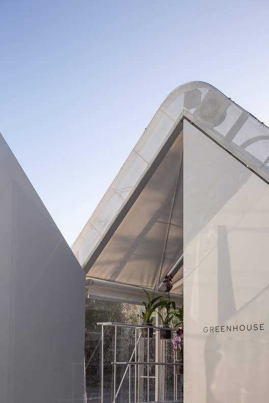 温室的半透明外层膜结构可以为室内抵御风寒,并将自然风引向进气口,且使人们可以从不同方向看到室内的情景。内部的膜结构则阻挡了阳光直射,并营造了十分明亮的光环境,且使人们可以从室内观察到外部环境。