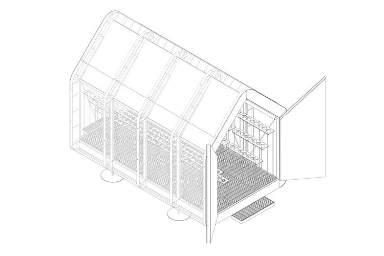 每个温室的尺寸由可运输的总体积决定,建筑材料选用了钢制底盘、聚碳酸酯实心板和复合铝板,使整体的重量和材质都得到了最大程度的优化。