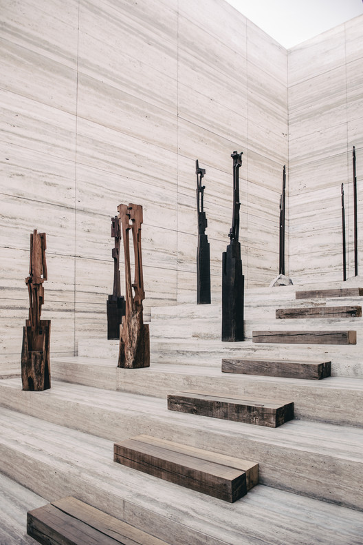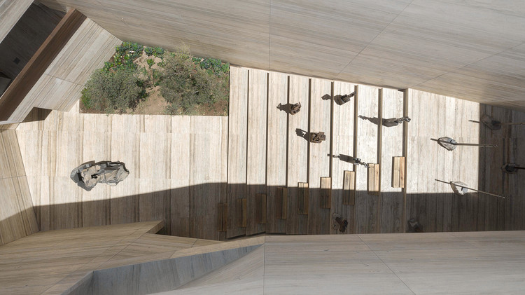 这种景观迷人和独特的性质滋养了该方案设计。 通过整体立面上的一个小开口进入建筑,该入口将游客与具有纪念意义的中央空间相连,这里表现出了“到达采石场”之意,同时该中央空间也可称为:Agora(阿古拉:古希腊用于集会和市场交易的公共空间)。 这是开始一个新的博物馆特色之旅的起点,其中摆放着不同特色材料的多个展厅都围绕着中央空间“阿古拉”,创造了动态和多样化的观展体验。