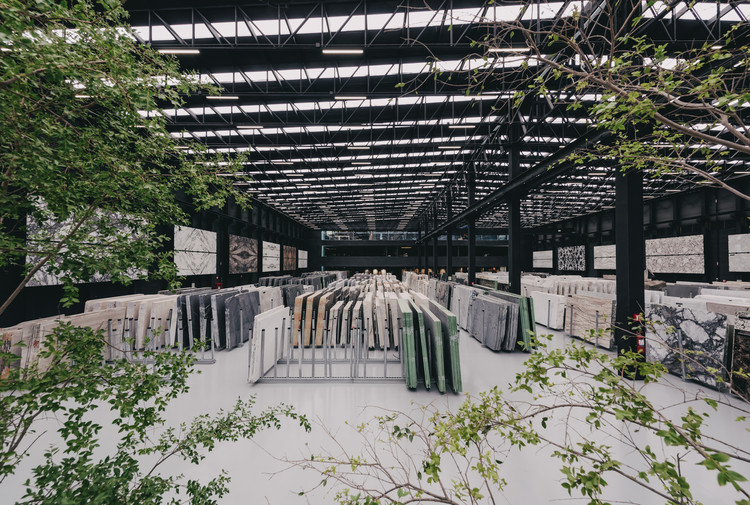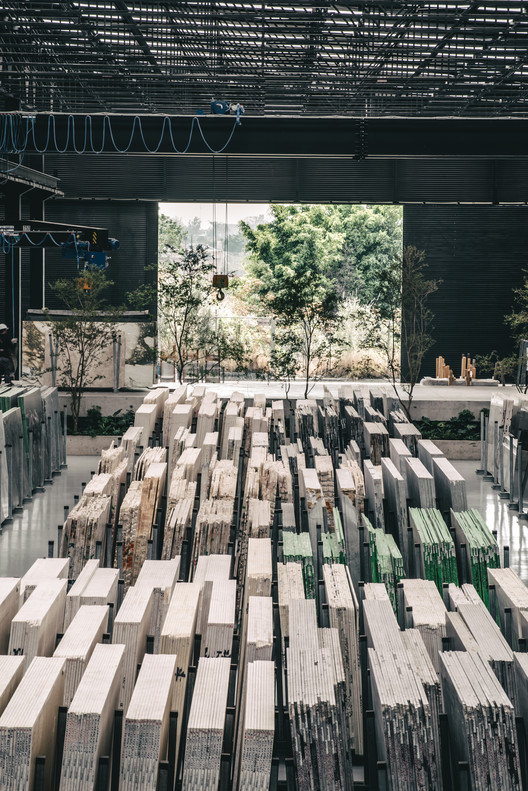 建筑物在功能和物理上分为两个整体。 这两个整体彼此独立又互相交织:采石场(包括中央空间,设计中心,自助餐厅和多功能室)和仓储空间,我们将在仓储结束整个游览体验。 这个仓储空间作为一个集装和配送中心,是一个半透明的中性空间,并由森林构成的其背景。空间如同一面画布,赋予了石头在某种场景的相关性,这一切再次将我们与物质的起源联系在一起。