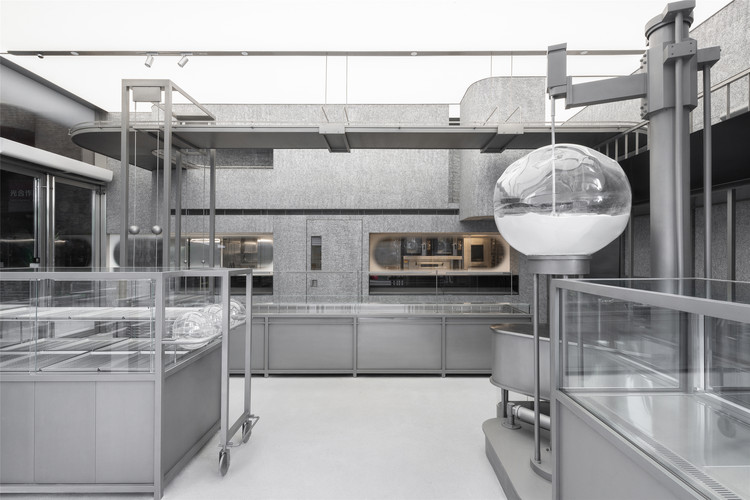 无论是过去、现在或未来,人们始终保持着对食物更多维度的探索,从而推动着食品生产技术的不断迭代和创新,而食品工业的发展,也为人们的食味和生活带来了无限可能。这种共生的关系成为这一处空间概念的灵感来源,设计师试图从后工业时代的复杂性中摄取素材,创造出具有机械美学的趣味空间,搭载当代主流传播媒介,向新一代消费者转译好利来品牌内核中的探索精神以及全新的烘焙理念。