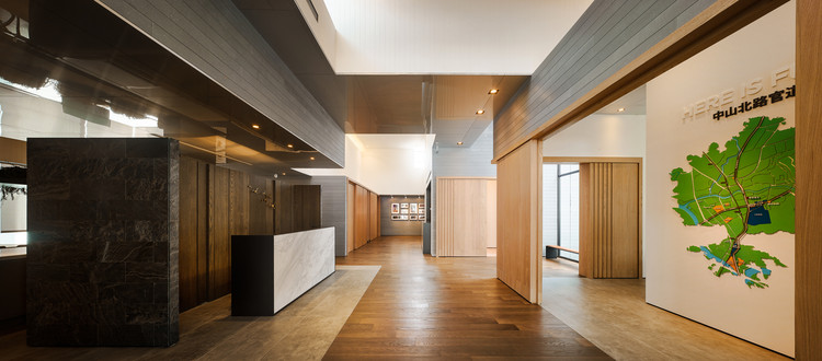 接待中心的內部,主要由模型室、工學館、VIP洽談室、樣品屋、廚藝教室及辦公室組成,伴隨不同功能高低錯落的量體形塑出室內空間的高低變化,天花鏡面材質的應用及天窗引進的自然光線,都讓室內空間更具張力。有別於一般接待中心的配置,設計上將模型室的量體以玻璃盒子的形式在外觀上凸顯突來,自然地形成一個櫥窗,吸引更多人的駐足!
