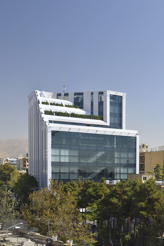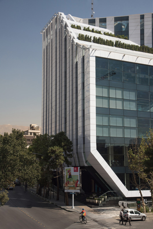 另一方面,在假想线的上部,项目必须与城市进行更有效的互动,以避免因其存在而扰乱市民的视线。因此,通过加强建筑外形的形式,我们创造了一系列的阶梯,并覆盖了屋顶上的设施。此外行人可以感知到狭窄的Pasdaran街天际线的形成方式。