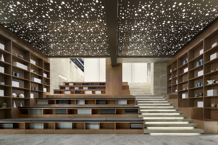 下沉庭院是整个设计的亮点,给室内空间输入自然光照,视觉也由此延伸开去。站在庭院树下,俯仰天地别具洞天,在一片天光的映衬中,自然和人工和谐相处。