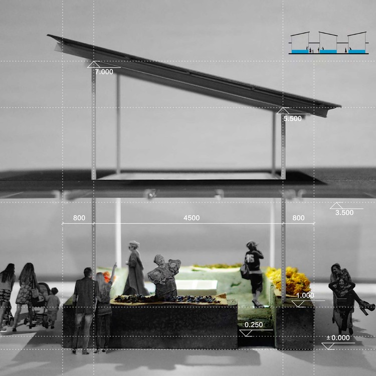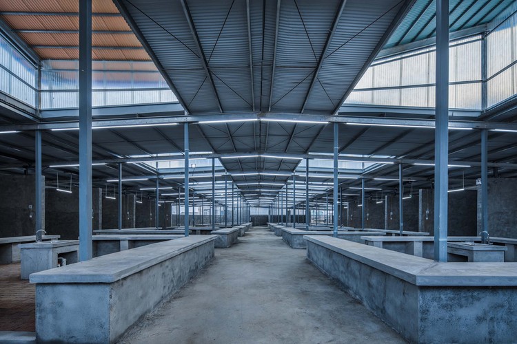 此外,场地原有的高差被直接保持下来,整个菜场基座呈1:60的坡度,在减少土方量的同时,也方便将来运营中的清洗工作。