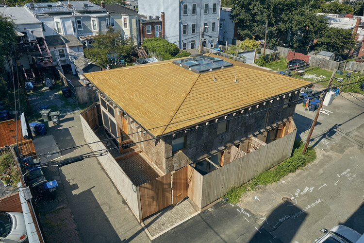 白杨树园是一座位于国会山的纯天然小巷住宅,其灵感来自本土建筑的自然物质性、罗马住宅的空间组织以及华盛顿木制小巷结构的复杂历史。 郁金香杨树皮覆盖一层软木,软木连接到填充有羊毛的空心竹板系统。刺槐屋檐远远超出立面,以尽量减少包层的不均匀和不必要的风化。 四个郁金香杨树柱标记九方形网格的内角,其中心包含九个天窗。在罗马人的家中,雨水为房子收集雨水; 在这里,这个中央中庭收集了房子最重要的自然资源:光。