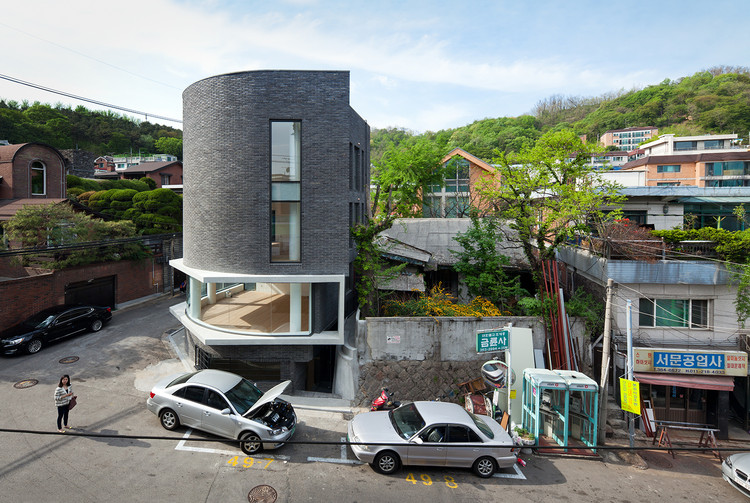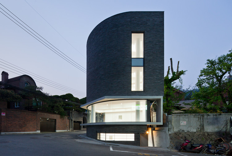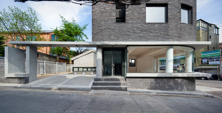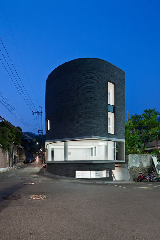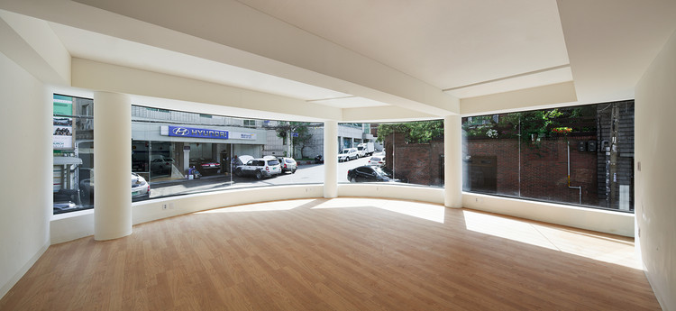 来自建筑师。Cornerstone 1-532 位于首尔市,北面是高档住宅区,南面是商业区。该项目是这一区域内几个新开发的项目之一。为了映射场地特征并和相邻的街道呼应,Cornerstone 1-532的外立面是一个整体而连续的弧面。在周围造型各异的建筑的衬托下,它安静地坐落在街角,十分和谐,与世无争。Cornerstone 1-532是一座四层的多功能建筑,每层垂直叠加,有着不同的功能。一层是商业空间,二层及以上是艺术工作室和住宅。