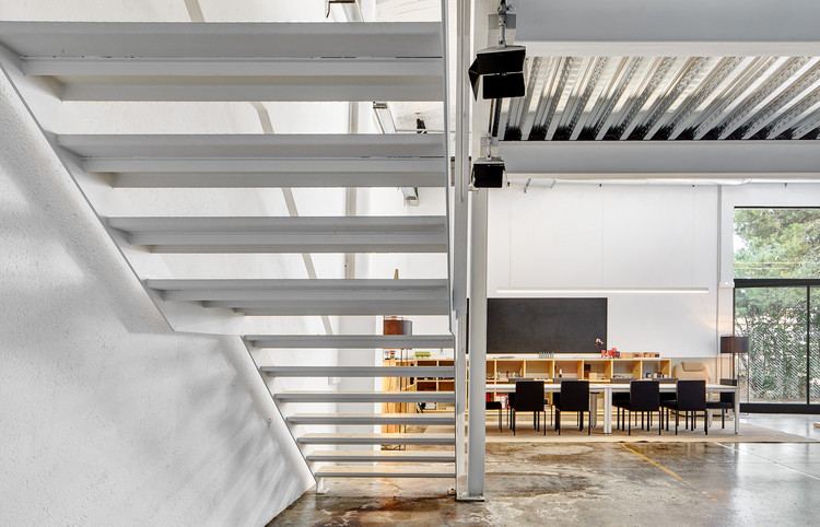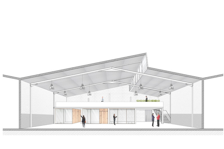出于这些目的,设计中心的柱子和金属框架,天窗,窗户和水泥铺装被保留。同时,被挑高的空间由全新的磨砂白色金属结构和合成金属板组成。地面层的空间被简化为用涂过漆的松本框架来定义。