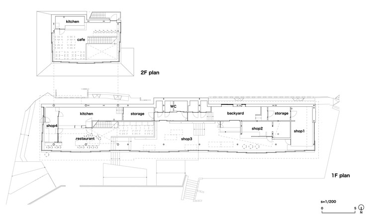 东京附近的旅游目的地高尾山被米其林绿色指南( Michelin Green Guide Japan)评为三星级别。这座建筑为于这里的一个缆车车站旁,为其提供零售等服务措施。在我们装修之前,从车站到山路有一排排的零散独立的小店铺。纪念品店并没有从咖啡店和餐厅的客流中获得“流量”引入。