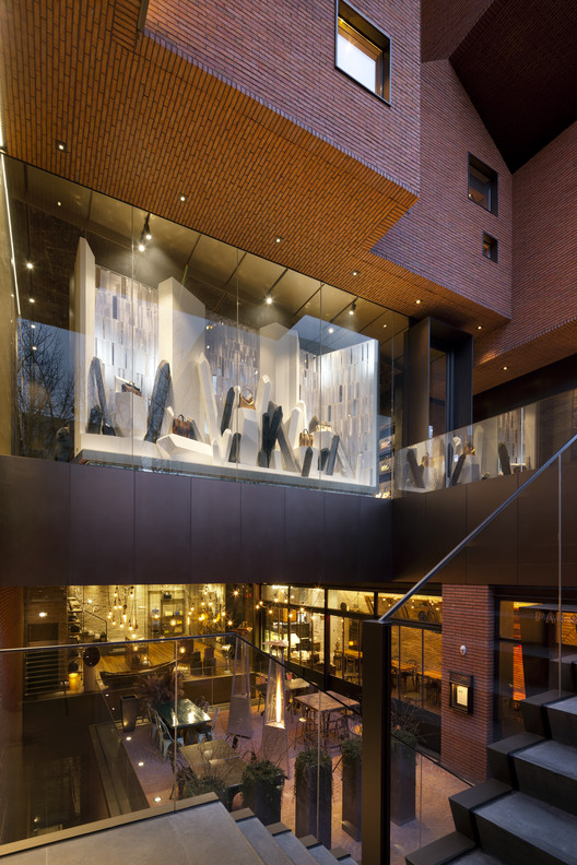 作为设计竞赛的获胜者,TRU建筑事务所+Eho曾为店面概念和建筑设计工作。对于一个拥有悠久制造历史的奢侈品牌,我们提出了一个“村庄”这一概念,其中容纳了品牌新产品、工匠和艺术家。该村庄创造了协同创作的平台,老皮革工匠正在与新兴设计师们一起工作。“合作村”的概念反映了Simone的商业文化,Simone在手袋设计方面一直与年轻艺术家合作。