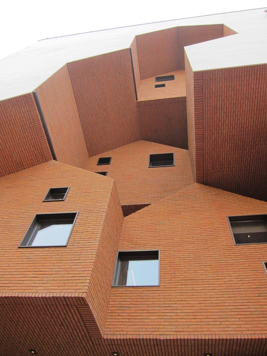 建筑的形状是根据村庄的形象形成的,整体就像小堆房子堆砌在盒子里。纯白盒子和砖房在形式、色彩和纹理上形成对比,增强了雕刻的效果。雕刻的村庄在室内空间里完全颠倒过来,形成了供商店和艺术家工作室使用的小型山墙房屋。
