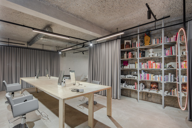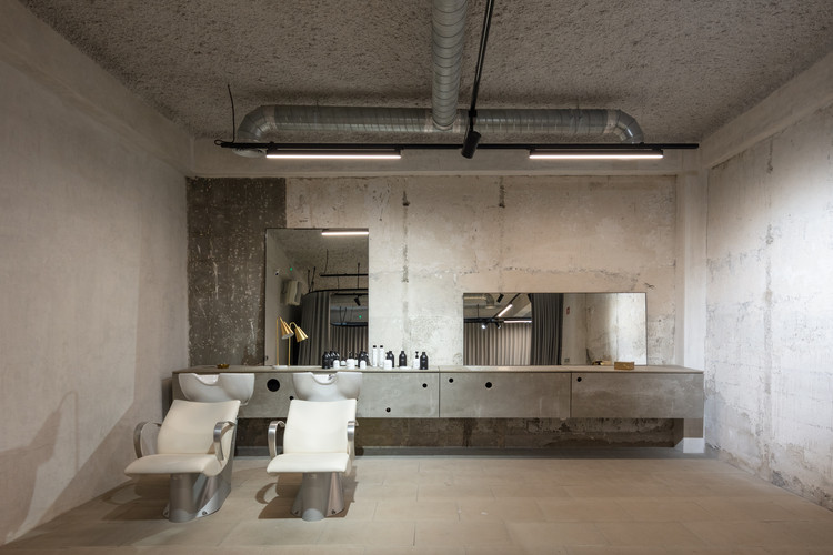 美发沙龙、文化音乐概念店通过一个入口进入,各自独立,又在空间和视觉相互连接,每一个空间中都能清晰地查看改造留下的痕迹。