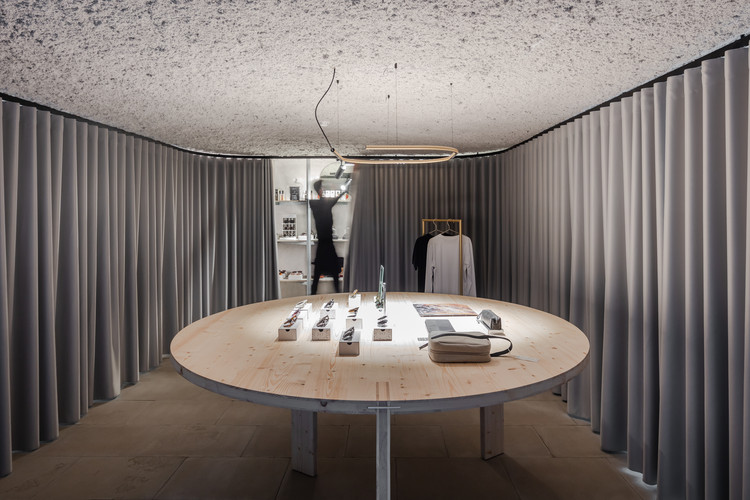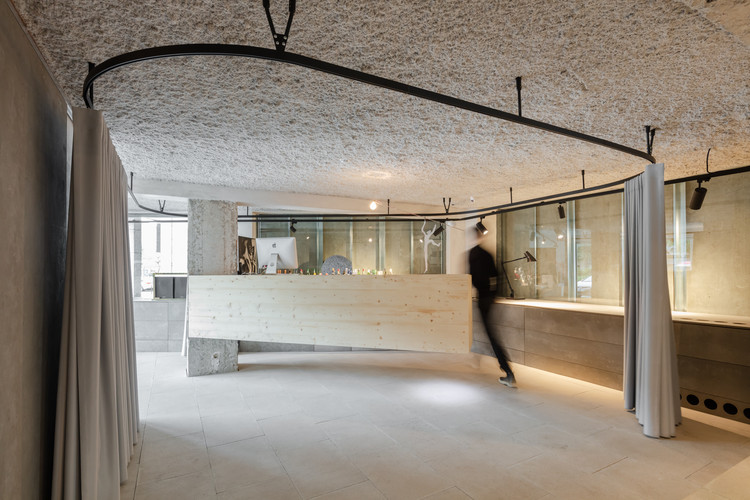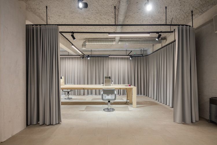 对“未完成”的赞颂是我们赋予空间新生的概念,在这里,并没有那么多被仔细推敲和修饰的细节——这些“未完成”的细节游走在惯性的建筑规则之外。那些保留下来的材料、柱子,混凝土梁以及未完成的墙饰面,正界定了我们改造空间的方式。每个空间中,都有一圈不透明的落地窗帘,使其能够封闭与围合。优雅的落地窗帘具有很大的灵活性,能够根据不同的需要,塑造出不同属性和亮度空间。