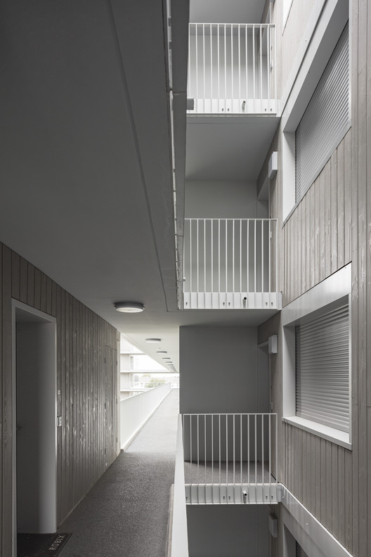 而在大楼的东侧,也就是为市民提供公共住宅的另一栋五层建筑,建筑师在其内部设计了39个居住模块,以满足各种朝向和室内布局的需求,并同时使每一间住房都可以看到外部的绿植和远处的城市风光。同时,建筑师将内部的办公模块设置在了大楼的西南侧,通过中央核心筒的设计,在优化内部空间模块的同时,还完善了这个全新建造的都市景观。总的来说,建筑师通过这样一种统一协调的方式,创造了一个极具凝聚力的建筑空间。