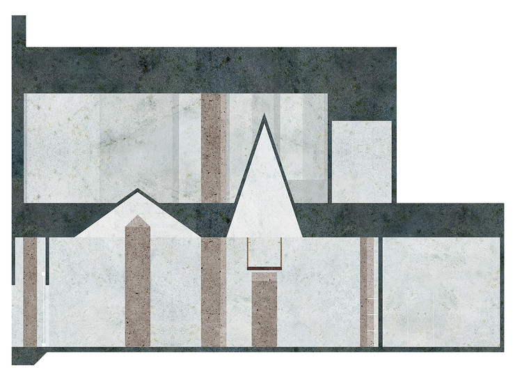 首层的展陈空间就像被混凝土支柱的屋顶,这些支柱是整座建筑的基石。