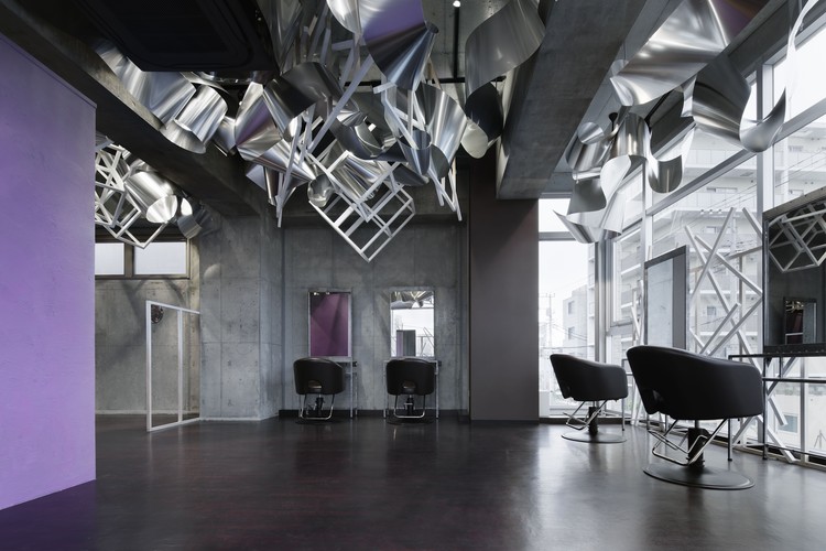 建筑师们为一个美容沙龙进行了室内设计。客户要求将空间设计成像亮丽的秀发一样可以散发出光彩的样子。因此,建筑师尝试把天花板用闪亮的水晶制作,将整个空间包裹进光彩之中,就如客户所描述的亮发一般。