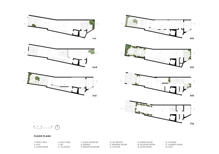 此外,该住宅还是一个绿色和可持续的住宅单元,优化了自然光和通风的利用,收集雨水用于花园的自然发展。植物基于循环生物系统生长和发展,利用储存的雨水系统进行灌溉,完全使用现有的枯枝败叶作有机肥料,创造了一个在屋内循环种植的小生态系统。