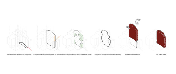 KN 住宅是为一个河内家族的两个成年子女设计的,他们需要一个能够缓解原居住地约束的新居所。此外,远程工作的需求也促使他们选择了一个地理位置中心但半自治的住宅安排,靠近家庭,但并不完全共居,确保了一定的私密性。因此,房屋被构想为两个潜在小家庭的未来居所。