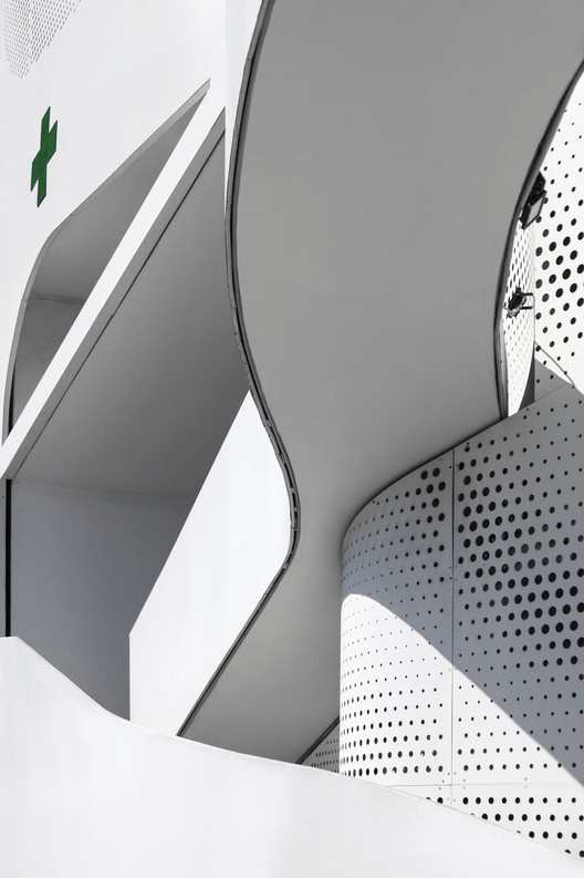 建筑师在药房的顶部,利用金属穿孔板,设计了一个巨型的三角结构,以让这栋建筑在比雷埃夫斯港口(port of Piraeus)的最远端,都可以明显地被人们看到。