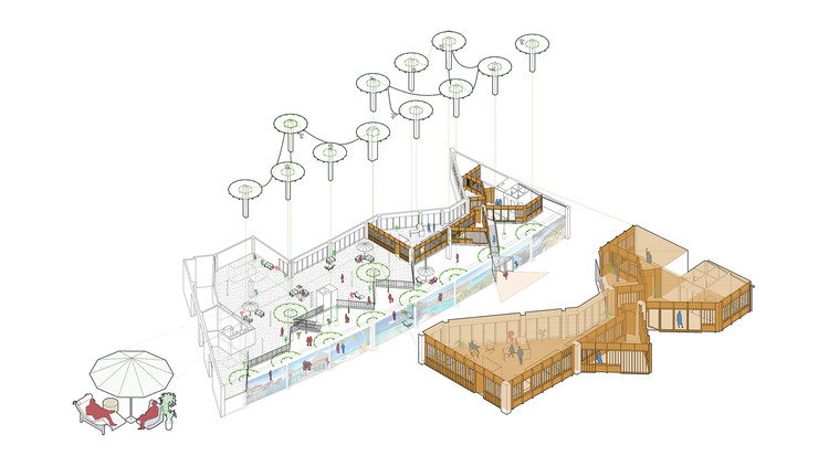 在这基础上,我们建立了一套适应棕榈树森林节奏的空间系统,采用了“微辐射”的三角测量模式。