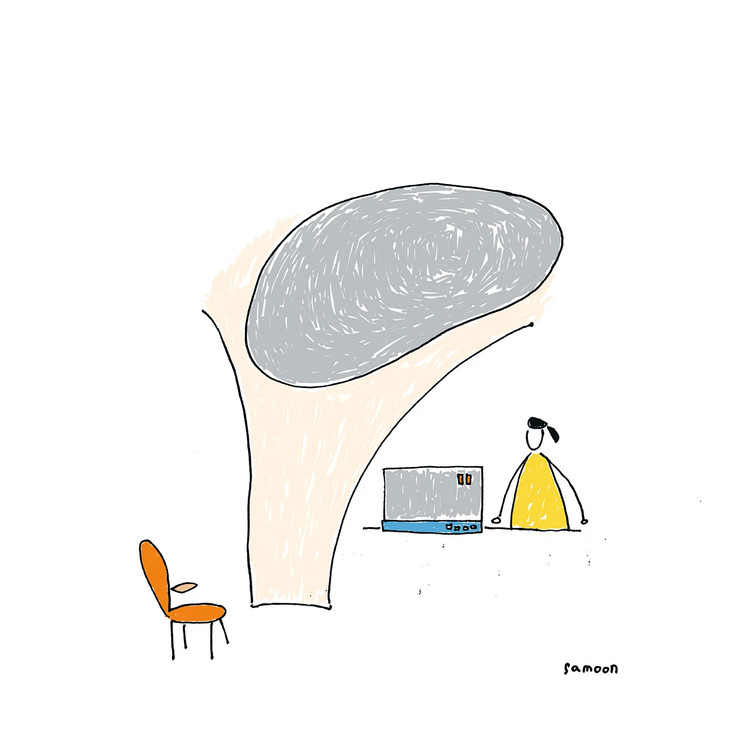 空间作为一个抽象的容器,自是可以包容复杂的行为。它不精确,却可以被预期。通过观察,这间极小房间正以我们设想的方式被感知和使用。这令我们振奋。建筑学不再自说自话,它正以一种可以被理解的方式进入日常。自然与人工,照见彼此,光是它最佳的媒介。我们从不排斥具象,眼睛是我们最喜欢的符号之一。它位于楼梯上方的最高处,每次费劲的爬上四楼,转身与它平视,都会有难言的情绪涌现。像极人生。