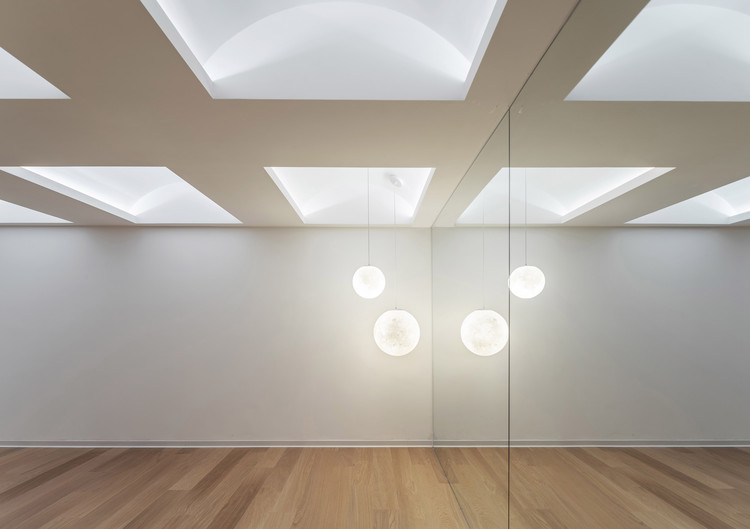 就像所有老城中心的建筑,我们的场地并不宽松,却异常丰富。空间上它位于一栋楼的二层和四层,并不连续。二层的落地窗看去是繁忙的巨鹿路,它是一条宜人的步行街区。四层的高度则正好越过周边老房的屋顶,目力所及是一片干净的绿意。二层和四层通过一座封闭的楼梯相连。