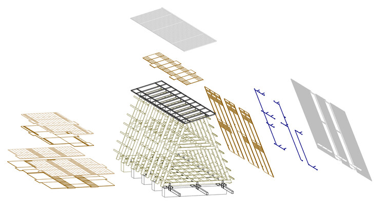 设计的前提是为所有参与者(环境、背景、用户和设计团队)创造一个敏感和受尊重的栖息地。可扩展性、运输灵活性、对环境的适应性以及流程的工业化使资源得到了有效利用,最重要的是,实现了与建筑同行。