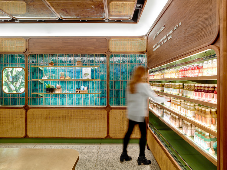 Valise是位于多伦多联合车站底层的一个零售空间。这个车站的悠久历史,可以一直追溯到19世纪,但其至今仍是当地主要的一个交通枢纽中心。多伦多联合车站是一个布扎艺术风格的公共建筑,其所运用的弹性材料包含了石头、黄铜、藤条和瓷砖。而新落成的Valise空间,与果汁品牌Greenhouse Juice Co.合作,共同在这个受历史遗产保护的建筑内,打造了一个颇具叙事感的零售空间。设计师以世纪之交的手提箱为灵感,试图将整个空间打造成织物内衬,黄铜外包的放大版箱体。