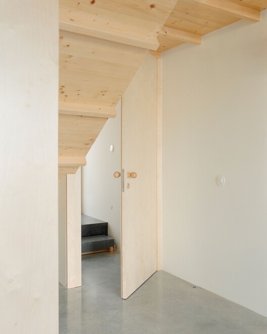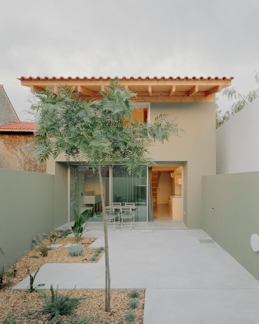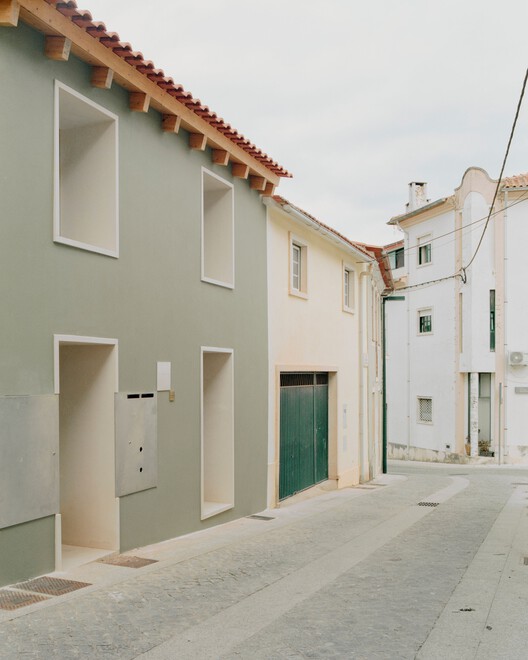 建筑名称“Verde Gago 住宅”源自建筑所处街道的名称与外立面采用的绿色。这一色彩选择不仅呼应了葡萄牙传统民居的色彩体系,同时也承载了一种微妙的怀旧情感,使传统与当代在视觉上相互交融。这种色彩策略不仅是一种美学决策,更是对场所记忆的致敬。建筑的主要材料——木材,进一步强调了这一历史与当代的结合。木材的使用呼应了葡萄牙传统建筑的构造方式,同时在形式上又有所创新,使其在街道的整体风貌中既能融入,又不失独特性。无论是建筑结构还是室内细节,木材的运用都为空间营造出一种温暖且富有亲和力的氛围。